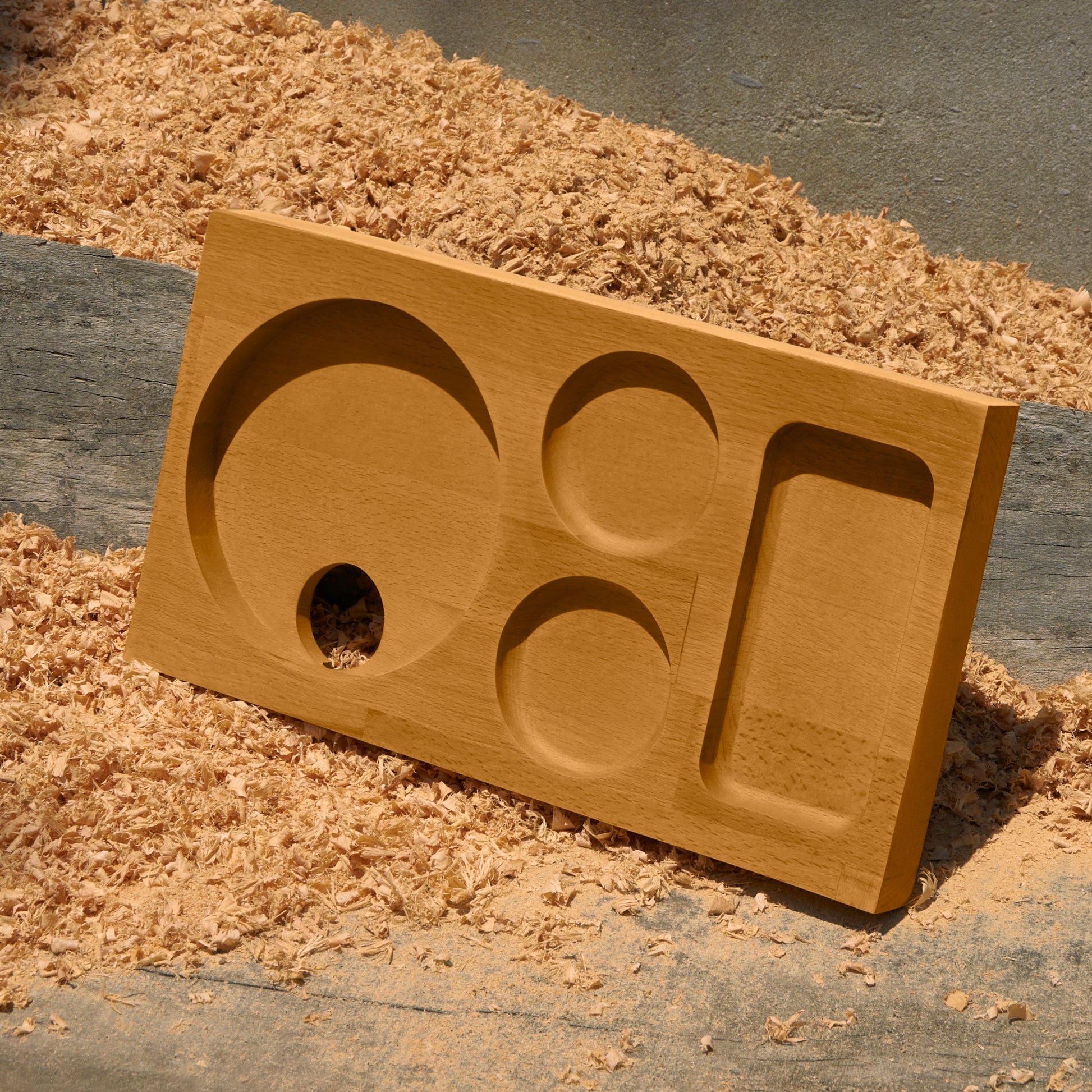 Modern ve doğal görünümlü bu ahşap mini servis altlığı, fonksiyonel bölmeleri sayesinde hem mutfak hem de yaşam alanlarında pratik kullanım sunar. Sade formu ve estetik oyuklarıyla hem düzen hem de görsel bütünlük sağlar.